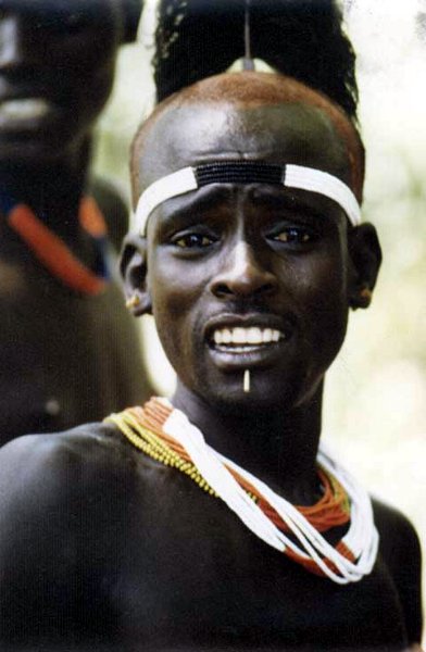The Bodi are pastoralists living close the Omo River in southwestern Ethiopia. The Bodi are of Nile-Sahara stock and pastoral background. Although they do cultivate sorghum along the banks of the Omo River, their culture is very much cattle- centered. Similar to the Mursi, livestock plays an important role in marriage, divination, and name giving rituals. The Bodi classification of cattle is complex, with over eight words to denote different color and patterns. Bodi dress is simple. The women wear goatskins tied at the waist and shoulder, while men fasten a strip of cotton or bark-cloth around their waist.